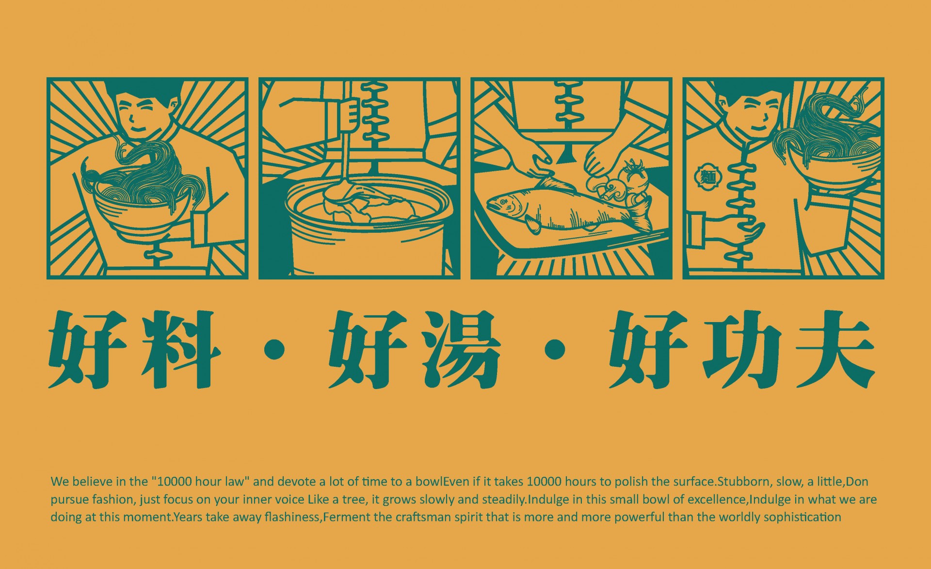 项目背景:历经三代传承的汤面技艺,我们不断筛选更优质的食材与制作工艺,让小小的一碗面也蕴含着功夫与底蕴,为每一个食客带去对生活的治愈,我们相信“1万小时定律”,将大量的时间投入到对一碗面的打磨自中,即使花费1万小时,也在所不惜。固执,缓慢,少量,不追求时髦,只专注内心的声音,如同树木一般执着、缓慢却又坚毅、循序渐进的生长着。沉迷于这小小一碗的精益求精,沉迷于我们此时此刻所做的事情之中。岁月带走浮华,发酵出跳脱世故,成就内心越发强大的工匠精神,这些年我们常常看到食客吃完面后满足的神情,也总是看到常客带来新客,追求得到认可,感到由衷的快乐,我们享受花功夫做好一碗面的过程,也期待这些功夫能让食客满意。